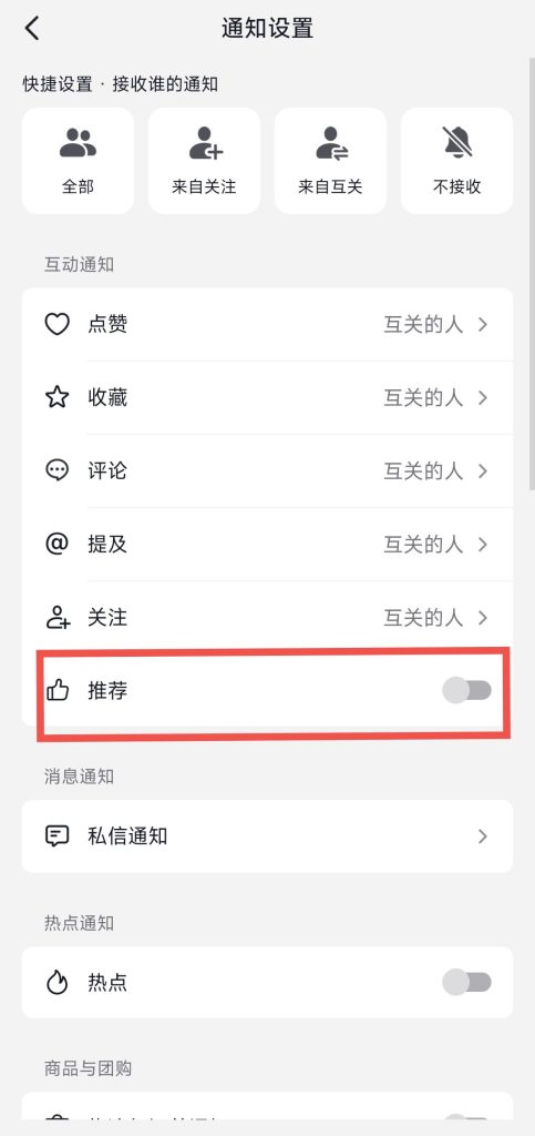 如果你觉得好友频繁转发的内容给你带来了不好的体验,虽然你无法控制别人的转发行为,但你可以关闭系统发送给你的推荐通知,让你的手机不再为此震动。